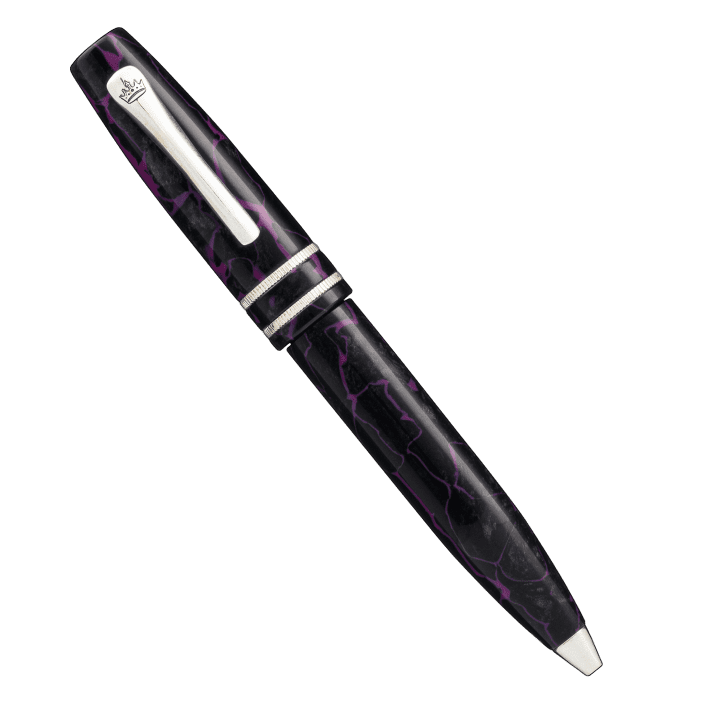 Abstract stands out with its deep black resin body streaked with vivid violet veining, creating a bold pattern reminiscent of modern art. Finished with polished silver trim and a sleek clip, this luxury pen blends expressive design with refined luxury.
