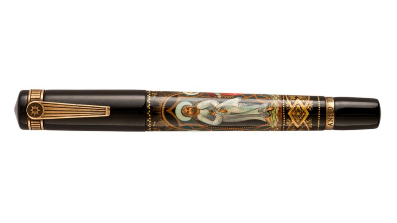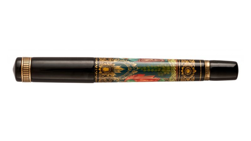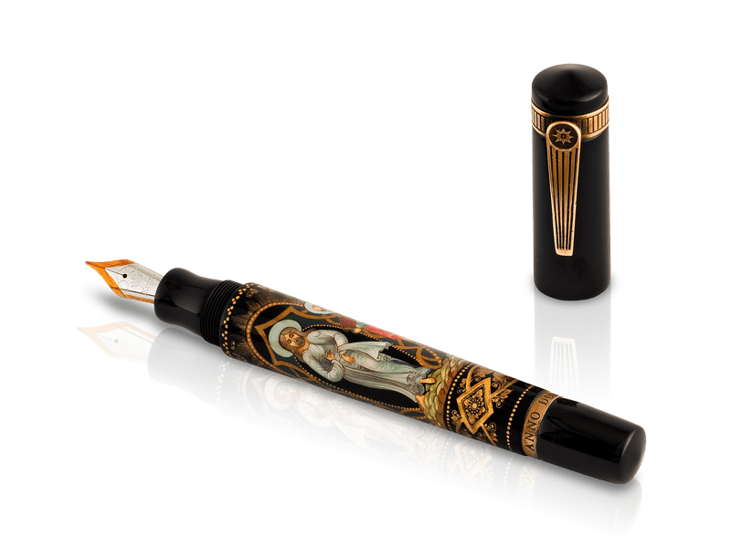The depiction on the Krone Anno Domini MM tells of the miraculous event, which took place on Mount Herman. Christ became transfigured before the eyes of his disciples, Peter, James and John, while the prophets Elijah and Moses appeared and conversed with Him. It renders a unique scene as we enter the second millennium since the birth of Jesus Christ, the Savior. The starburst at the top of the clip signifies the birth of Christ, with the star of Bethlehem. In this age of high-speed telecommunications and the Internet, the Krone Anno Domini MM takes us back to our simplistic origins, to a time when the basis laws of man were promulgated and shared, by word of mouth and other tediously slow means of communication. As the first millennium A.D. emerges with the second, the Krone Anno Domini MM seamlessly links the periods, using the Palekh miniature artists as its medium. While the art form, and the magnificent pen, in which it is framed, are indicative of the old ways and means, the spirit of this piece transcends time and technological progress and links us inexorably with our miraculous past.