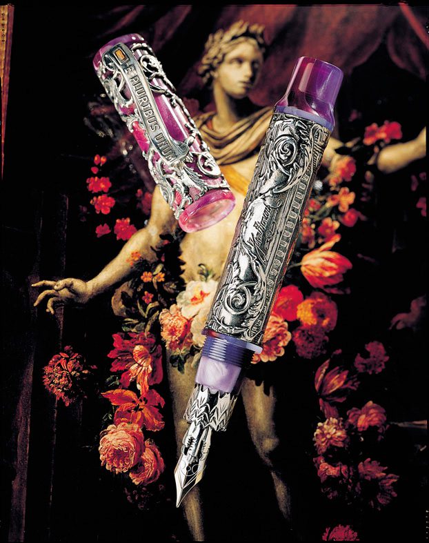 Available in a worldwide Limited Edition of 288 fountain pens and 28 rollerballs, both with solid .925 sterling accents. Also available, are 28 fountain pens with White Gold accents.