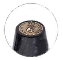 The cap and barrel are made of royal purple Italian celluloid. The base of the cap is a decorated bronze band, etched with the GviR crest symbolizing in Latin ‘George Rey VI’ (King George VI). The top of the cap is adorned with a replicated version of a coin issued to celebrate the coronation of King George VI. Unique bronze banding at base of barrel is symbolic of the King’s Royal uniform.