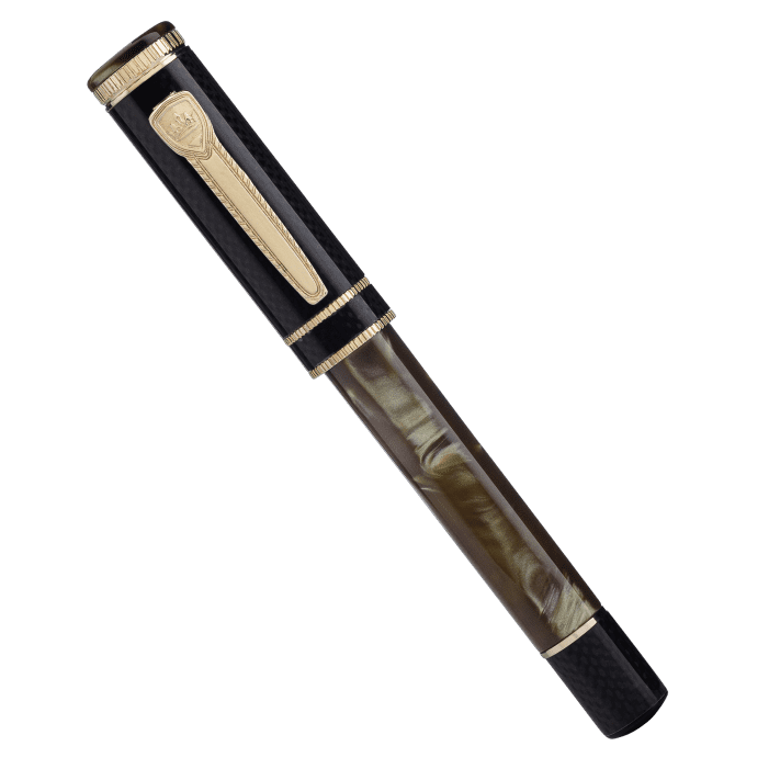 The new Apex collection is a remarkable achievement of unmatched sophistication. The fountain pen is enhanced with an 18kt gold nib, available in M, F, and B widths, and is cartridge/converter fill, with the converter included. The collection is completed with a matching rollerball. Available Finishes: Throttle (Green), Turbo (Red), Hairpin (Yellow), Madagascar (Black), Aegean (Blue).